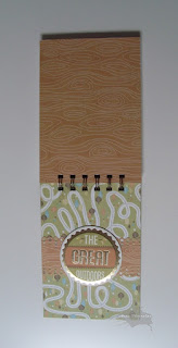 Caderno A6 de capa dura, com 60folhas, decorado com Cartolina castanha, Papel Scrap e Stickers 3D cartão da colecção “Happy Campers” (We R – Memory Keepers). Utilizando cortador (tira) Martha, caneta Copic E29 e argolas Zutter ½ (White).
