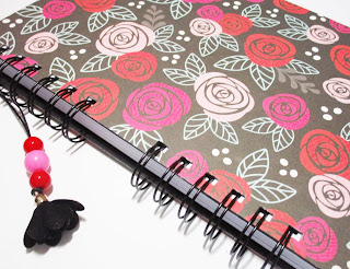 Caderno A5 c/ berloques “Rosas fundo preto”
